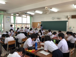 学校が再開して、一か月が経ちました。69期生もようやく今中生としての自覚が芽生えてきたころだと思います。今日は、学級写真の撮影と各クラスで学級目標を決めました。