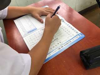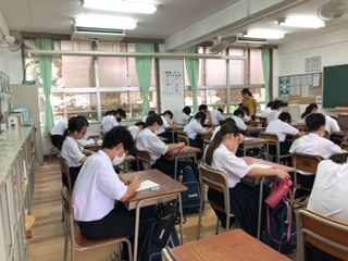 中学校では、定期テストだけでなく、授業中に小テストを行います。今日もあるクラスでは、国語科の漢字の小テストがありました。ノートに何回も書く人、手で書き方をなぞる人、と色々な方法で勉強をしていました。