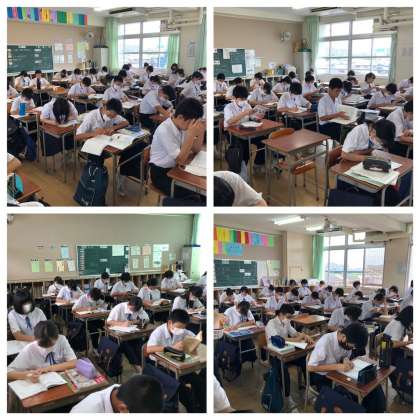 朝読書の時間は、テスト1週間前ということもあり、テスト勉強をしてもよい期間になっています。