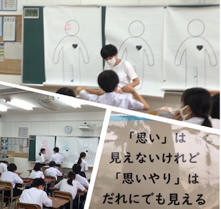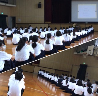5時間目は、体育館で小林先生より講話がありました。講話は「人を尊重しよう」という言葉から始まりました。「尊重とは尊いものとして重んずる。これは、自分も他人も大切にすること」です。自分の感情のままに動くことが、ときには、人を尊重できず傷つけてしまい、いじめや差別につながります。よって、違いを認めることが大切であることを学びました。