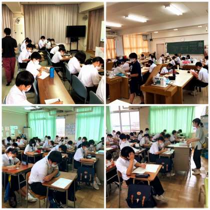 今日の写真は、先日返却されたテスト結果の個票を確認したり、「1学期を振り返って」と題したワークシートに取り組んだりしている様子です。