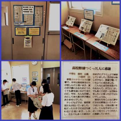 2年生では、社会とのつながりを感じさせるような教育環境の充実に努めており、写真にある新聞コーナーはそのひとつです。