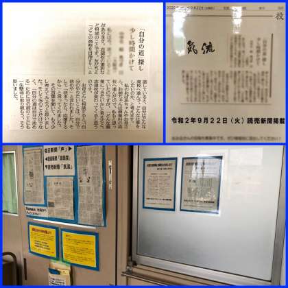 この度、なんと本校2年生の生徒の投書が昨日の読売新聞に掲載されました!内容は、自分の歩むべき将来の進路について、ご家族との会話から、色々と考えたことが綴られています。