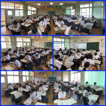 今日は、先日行った「新聞の読み方」の授業を、残り2クラスでそれぞれ行いました。