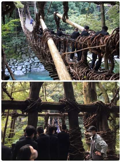 かずら橋渡を渡っています。