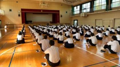 本日は体育館に集まり、修学旅行の振り返りを行いました。