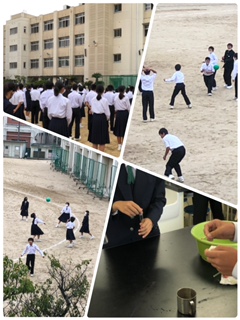 69期生はいつも元気に、お昼休みにボールを使っています。バレーボールに中当てと楽しんでいます。