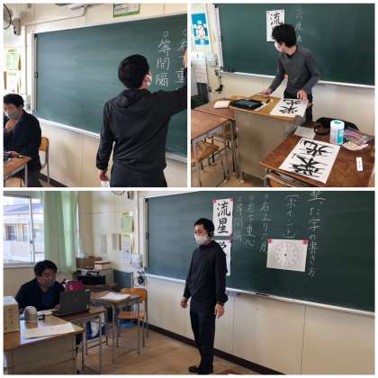 出席確認をした後、「整った字の書き方」というテーマで字を書く際のポイントについて学習をしました。