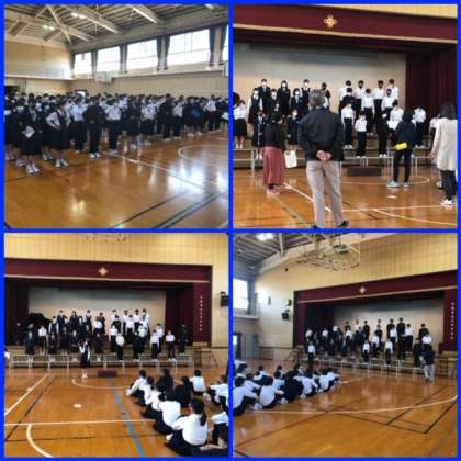 舞台上では、各クラス一番だけを歌いました。互いに歌声を聞くことは、これまであまりなかったと思うので、良い刺激になったことでしょう。本番まであと少し。ここからの仕上がりに期待したいと思います。頑張れ2年生!