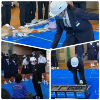 今回、体育館に入れていただいた合わせガラスは、どんなにハンマーで叩いても貫通することはありませんでした。これには、69期生も驚きが隠せませんでした。