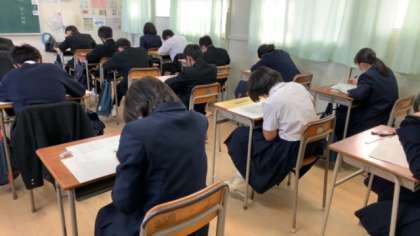 職員室前の学年主任からのメッセージの欄には「とても大切なテストです。」という言葉が書かれてあります。。