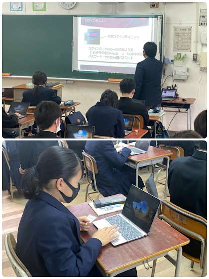 いよいよ今日から使用がスタートしました。ログイン方法や使い方について、1年2組で授業が行われていたので見学に行きました。