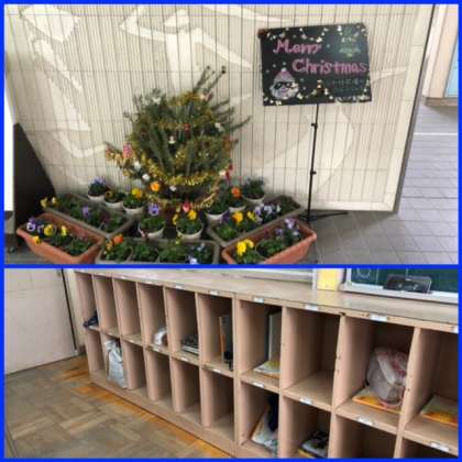 今日はクリスマスイブ。明日で2学期も終わりということで、雰囲気的にも学期末という感じになってきました。校舎を見渡すと、そういった季節を感じさせるところがいくつかあります。
