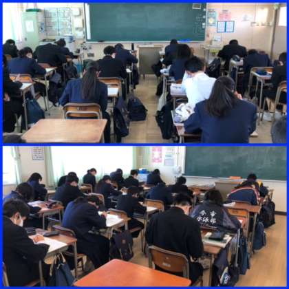 寒いとついつい縮こまってしまいがちですが、写真にある2年生のうしろ姿は、寒さによるものではなく、授業での問題演習中の一枚です。