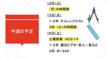 2年生は、国・社・数・理・英+6限エナジード(キャリア教育)