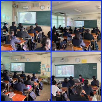 避難訓練後は、各クラスにて、地震が起こった時の行動の在り方について、動画を見て考えていました。こうして学んだ知識も、いつの日か必ず役立つと思うので、しっかりと忘れず行動できるよう意識しておきましょう。