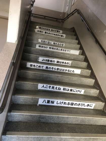 文化委員の生徒が、南館(1年生校舎)の階段に百人一首の歌を貼りました。1年生では、25日(月)に、百人一首の交流戦が予定されています。ぜひこれを活用して、一首でも多く覚えましょう。