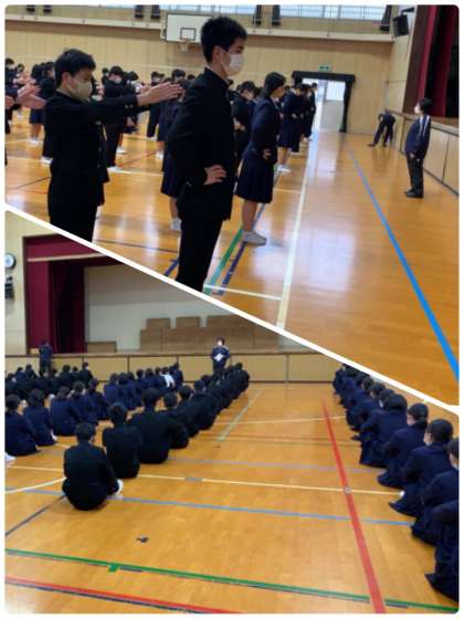 そのことに触れ、「1年生のころからどんどん成長して、この学年は決まりをしっかりと守れる、とても良い集団だと心から思います。この集団に誇りをもって、ストレスのかかるこの時期を、みんなで支え合って乗り越えましょう。」と、これまでの思い出を振り返られました。