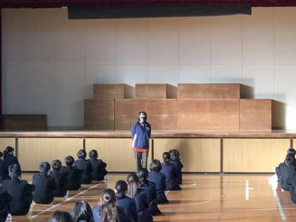 本日の学年集会は、本校4組担任・井元から、日々の学校生活について、2つの話がありました。