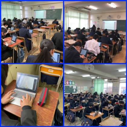 6限目はタイピング練習です。一人一台パソコンを活用し、実際に文字入力の練習を行いました。慣れない中、まだまだ一つひとつキーを押している人が多く、みんな必死で取り組んでいました。これからの時代は、パソコンによる文書作成力が求められる場面が増えてくることでしょう。今後も、続けていくので、少しずつ慣れていきましょう。