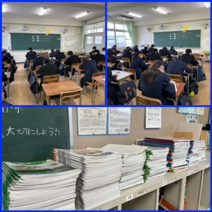 昨日に引き続き、真剣に受検する2年生の姿が見られました。試験が終わると、ホッとした表情をしている2年生でした。その後のノートやワークなどもきちんと提出されているようでした。