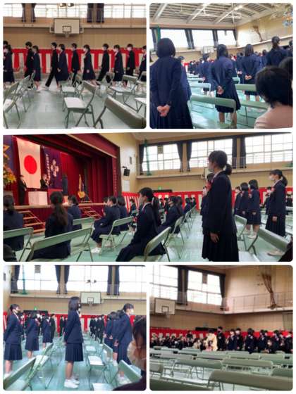 3年前の入学式の時には、まだあどけなさの残る姿でしたが、胸を張って堂々と入場する今日の姿からは3年間の心身の成長が感じられます。
