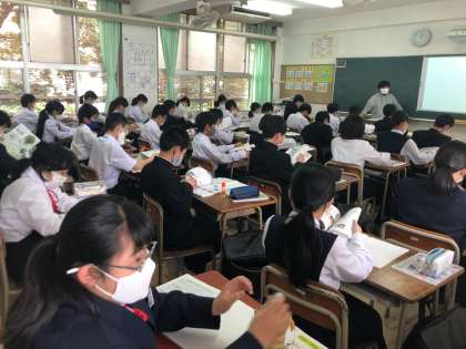 今週は、初めてのテストが近くなり明日から対面授業は国・数・英・社・理の五教科中心となるので、音・体・美・技家の四教科の授業を非常に楽しみにしているようでした。オンライン授業を含めすべての授業・教科を全力で頑張りましょう。