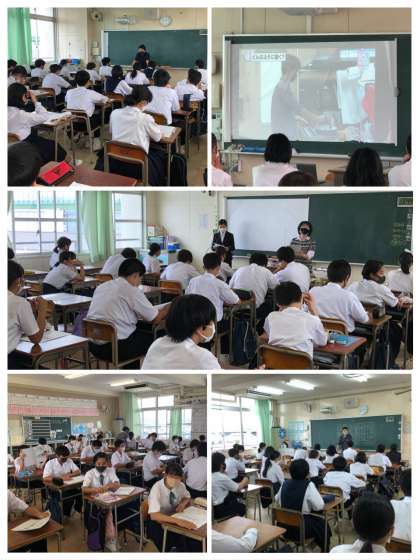 担任が「なぜ教師になったのか」という話をするクラスもあれば、働き方に関する映像を観ていたクラスもありました。また、2組では教育実習生がアルバイトの経験談を披露してくれました。