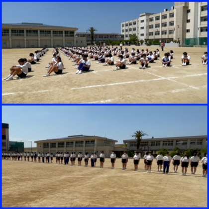 練習が終わり片づけをしていると、体育委員の何人かの人が「先生!暑い中、練習ありがとうございました。」と声をかけてくれました。自分たちも暑いはずなのに、そういった声をかけることができるすばらしさに感動です。