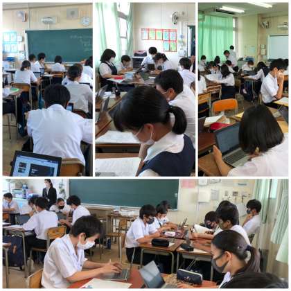 本日6限は今週の水曜日に引き続き、キャリア教育を行いました。今回は「職業調べ」を班で行っています。世の中にある様々な仕事について、仕事内容や必要な資格・免許、働く場所、環境、収入等を具体的に調べます。一班で一つの職種をパワーポイントで発表するため、班ごとにチームズを作り、班員が同時並行で1ページずつのスライドを作成します。生徒たちは慣れた手つきで、自分のオリジナルのページを作っていました。イラストやアレンジがふんだんに使われており、クオリティーがかなり高そうで完成が楽しみです。来週クラスで発表する予定です。職業について理解が深まることを願っています。