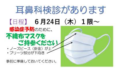 6月24日(木)に耳鼻科検診を実施します。