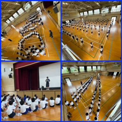 今日はあいにくの雨。午後からのスポーツフェスティバル学年練習は体育館にて行いました。
