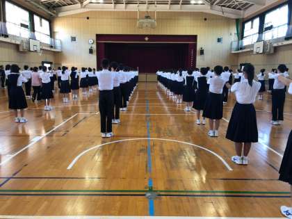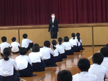 まず、本日の話では、「しっかりとあいさつができる」、「チャイム着席ができるようになった」と、69期生の良いところをほめていただきました。