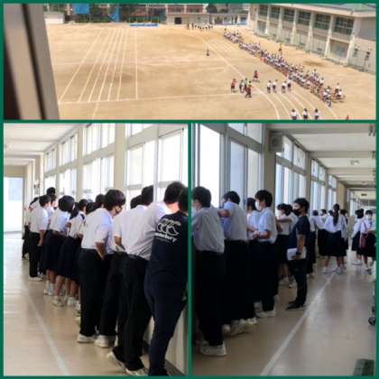 今日は3年生のスポーツフェスティバルが行われました。2年生は休み時間にソワソワ... 気になるようで廊下に出てほぼ全員が3年生の様子を窓越しに眺めているという珍しい風景でした。リレー競技が始まると「○○先輩や!」「早い!」など応援する言葉を口々に言っていました。