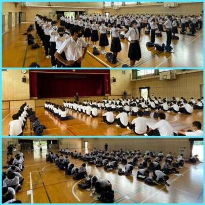 早めに体育館を開け、登校してくるみなさんを待っていたのですが、体育館へ入ってくるや、わざわざ前までやってきて「おはようございます!」としっかりと挨拶をしてくれる人がたくさんいました。話を聞く姿勢もこれまでと変わらず、しっかりとできていたので、普段の良き習慣こそがやっぱり大切なんだなぁと改めて感じさせてもらいました。