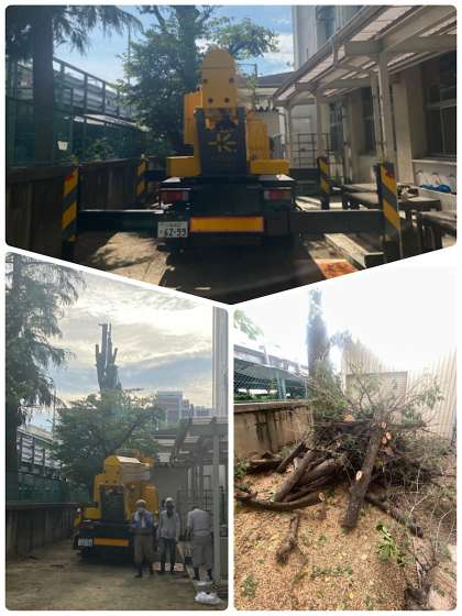 1年生校舎裏のヒマラヤスギ伐採【8月23日】