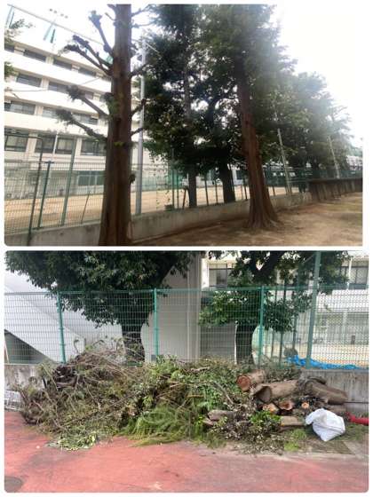 本年度、毛虫が大量発生したことで伐採することになりました。