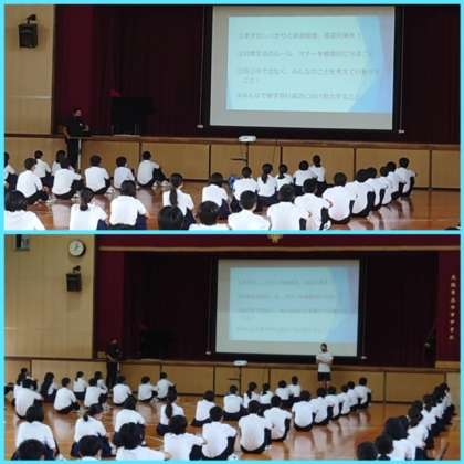 今日の5限目は、その概要説明を体育館にて行いました。目的や心構え、行程や各プログラムについての紹介とともに、感染対策の徹底をあらためて確認しました。