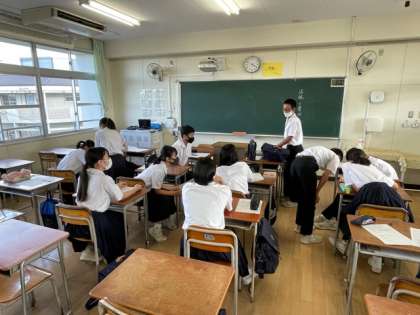 3年生修学旅行委員会の様子です。今日は、修学旅行のスローガンについてみんなで検討しました。