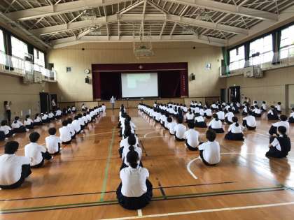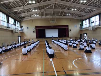 本日は学年集会でした。午後からのスポーツフェスティバルの練習に向けての話の後、桑原先生のお話がありました。桑原先生は多くの国に行き複数の言語を話すことができます。フィンランド語も話せますので普段触れることのない言語に興味があればぜひ先生の所に行って話してもらいましょう。先生は英語が好きでいくつもの国で英語やその他の外国語を学びました。みなさんも自分のやりたいことが決まっていたら今のうちからこつこつ目標に向かって進んでいきましょう。まだ、やりたいことがきまっていなくても焦らなくて大丈夫です。普段生活していく中できっとやりたいことは見つかるでしょう。1年生も後半戦です。限られた環境の中ですがたくさん学びましょう。