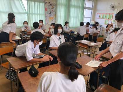 本日6限は、一泊移住の取り組みをしました。バスの座席決め、部屋決め、活動班の係決め等です。各クラス協力して、欠席した生徒の配慮もしながら話し合いをしていました。