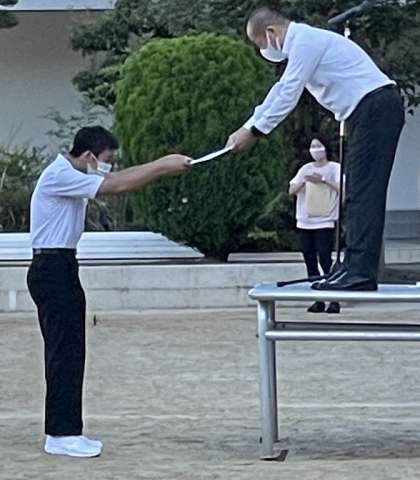 水泳部はブロック大会個人の部で優勝した生徒が表彰されました。府の大会でも4位になりこちらも立派です。