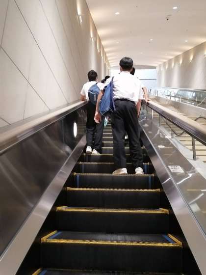 長ーいエスカレーターを登っています。