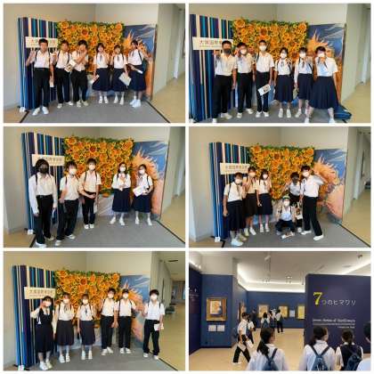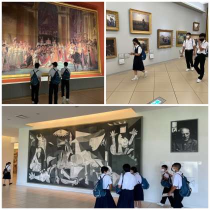 鑑賞中の様子です。大きな絵の迫力や鮮やかな表現力に驚きです。