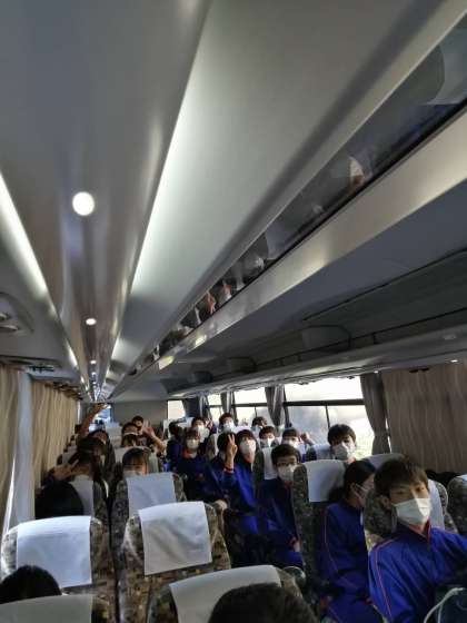 本日の活動場所である四国ライオンアドベンチャーリバーステーションに向かい、バスに揺られている3年1組です。