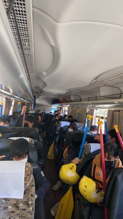 3・4組、着替えも完了しラフティングのスタート地点に移動します
