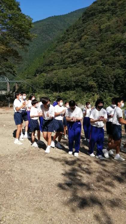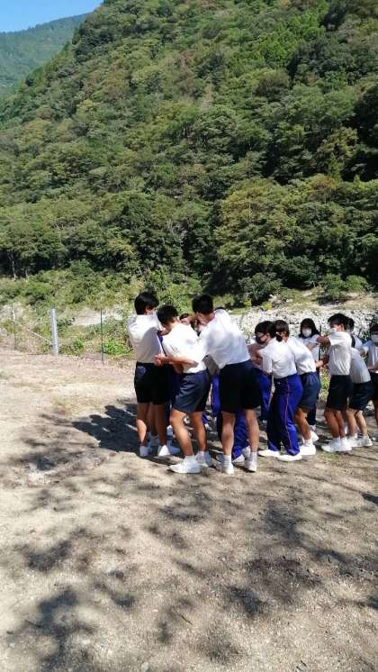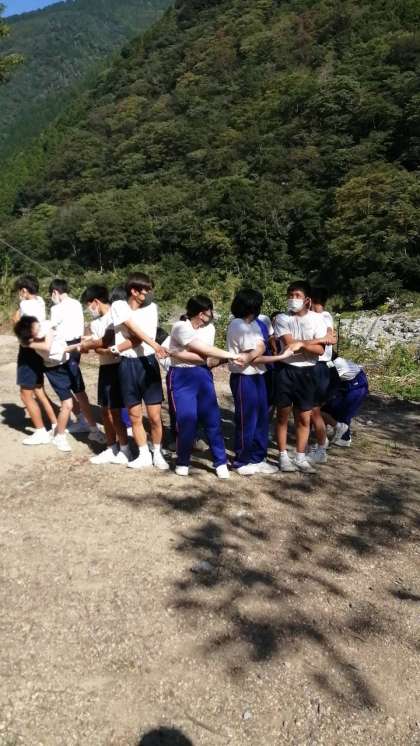 1組手をつないだままクルクル回っています!知恵と絆が試されます。成功しました!