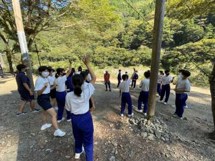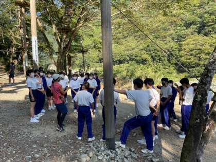 2組チームビルディングが始まりました!ガイドさんの巧みなリードで楽しく取り組めています!