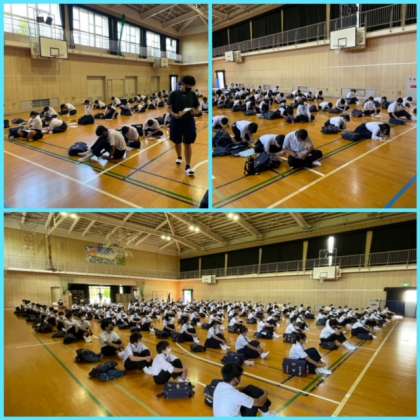 修学旅行から一夜明け、本日は3限目からの登校でした。登校後、体育館へ集合し、そのまま3限目を利用して、修学旅行の事後指導を行いました。