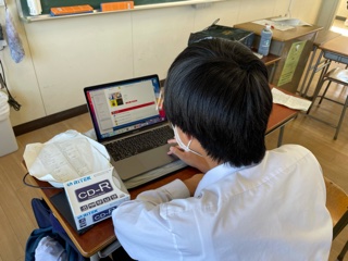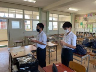 給食を食べ学活終了後、一泊移住の出発式、解散式などの司会、挨拶の練習、バスの中で聞くCDの作成を行いました。なかなか緊張している様子でした。